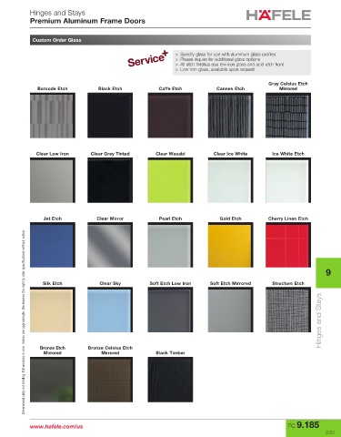 > All etch finishes use low iron glass and acid etch front