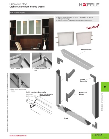 1. Miter the ends 45º. 2. Slide the brackets into the