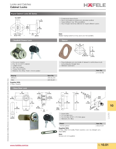 52 (2 1/16") (1") (3/16") Master keying systems or key plans are not available.