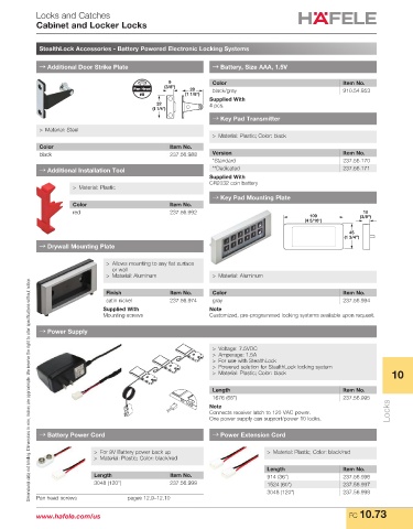 → Additional Door Strike Plate → Battery, Size AAA, 1.5V