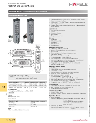 10 Horizontal, lever on right LH 231.97.013 231.97.113 > Long battery life (10 lock cycles per day for four years)