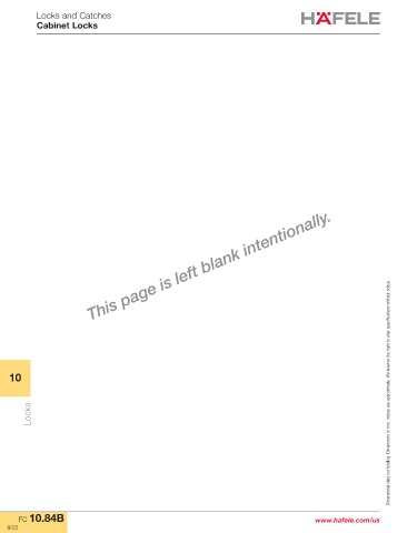 Locks and Catches Cabinet Locks 10 Dimensional data not binding. Dimensions in mm, inches are approximate. We reserve the right to alter specifications without notice. Locks FC 10.84B www.hafele.com/us 9/22