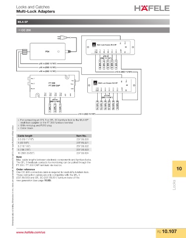 > For connecting an EFL 3 or EFL 3C furniture lock to the MLA 6P