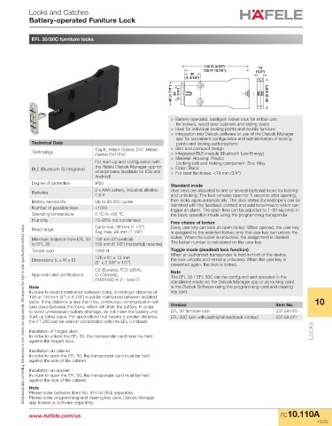 to avoid unnecessary battery drainage, do not insert the battery until EFL 30 furniture lock 237.59.070
