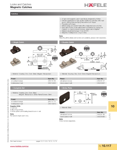 Magnet: Neodymium; Strike Plates/Screws: Steel (1/16") Flat Head
