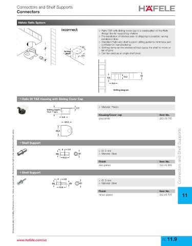 > Standard Rafix and shelf support drilling patterns minimizes part