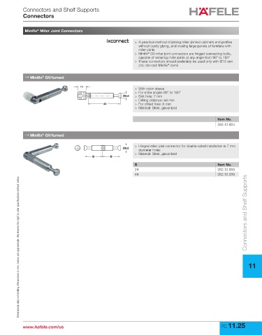 > Minifix GV miter joint connectors are hinged connecting bolts,