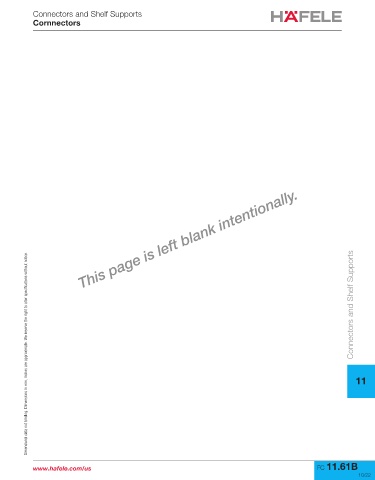 Connectors and Shelf Supports Cornnectors Connectors and Shelf Supports Dimensional data not binding. Dimensions in mm, inches are approximate. We reserve the right to alter specifications without notice. 11 www.hafele.com/us FC 11.61B 10/22