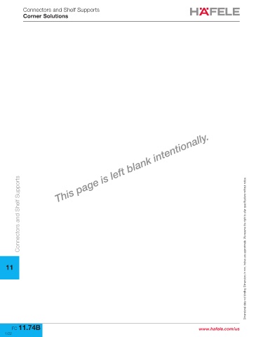 Connectors and Shelf Supports Corner Solutions 11 Connectors and Shelf Supports Dimensional data not binding. Dimensions in mm, inches are approximate. We reserve the right to alter specifications without notice. FC 11.74B www.hafele.com/us 1/22