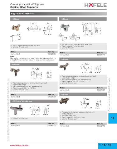 Finish Item No. → Ø5 mm Connectors and Shelf Supports