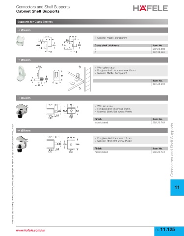 Ø14 Ø5 Ø15 Ø5 Glass shelf thickness Item No.