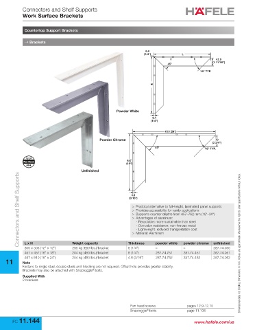 L x H Weight capacity Thickness powder white powder chrome unfinished Dimensional data not binding. Dimensions in mm, inches are approximate. We reserve the right to alter specifications without notice.
