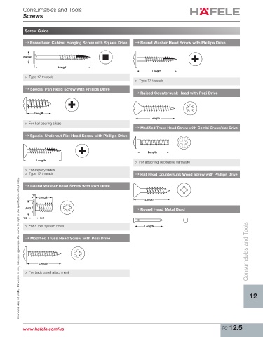 → Powerhead Cabinet Hanging Screw with Square Drive → Round Washer Head Screw with Phillips Drive