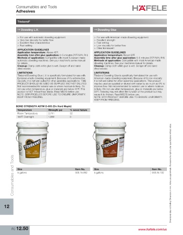 Methods of application: Compatible with most European-made Assembly time after glue application: 0–5 minutes (70˚F/50% RH)