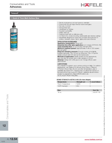 Assembly time after glue application: 3–5 minutes (70˚F/50% RH)