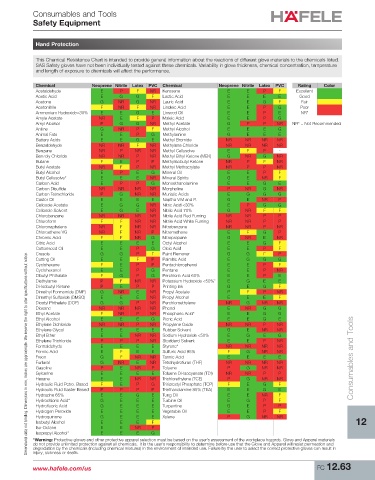 SAS Safety gloves have not been individually tested against these chemicals. Variability in glove thickness, chemical concentration, temperature