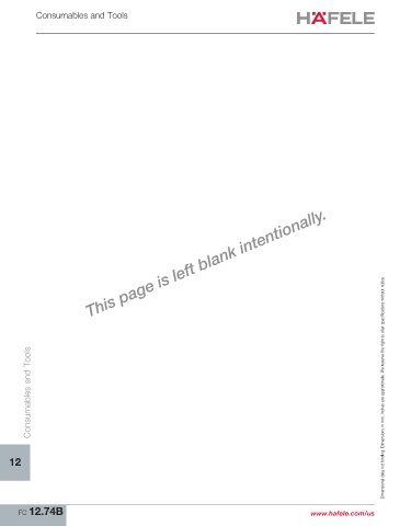 Consumables and Tools Consumables and Tools Dimensional data not binding. Dimensions in mm, inches are approximate. We reserve the right to alter specifications without notice. 12 FC 12.74B www.hafele.com/us