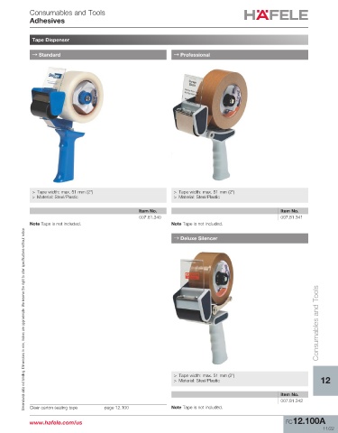 Clear carton sealing tape page 12.100 Note Tape is not included.