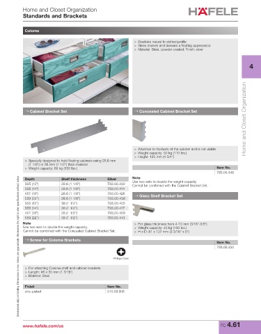 457 (18") 28.6 (1 1/8") 793.00.426 → Glass Shelf Bracket Set