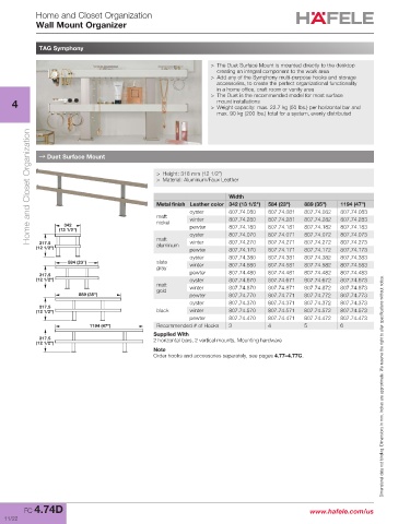 Home and Closet Organization → Duet Surface Mount > Height: 318 mm (12 1/2”) Width 584 (23") 889 (35") 1194 (47")
