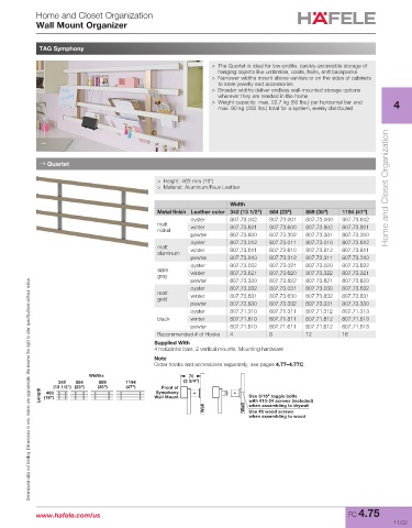 Metal fi nish Leather color 342 (13 1/2") 584 (23") 889 (35") 1194 (47")