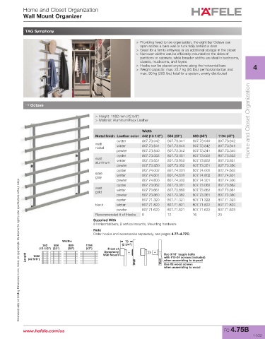 Metal fi nish Leather color 342 (13 1/2") 584 (23") 889 (35") 1194 (47")
