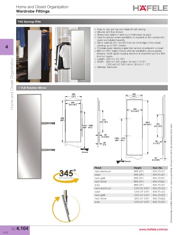 > 889 mm (35") height mirrors allow for installation above jewelry