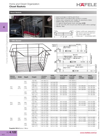 > For optional closet basket liners, see page 4.123