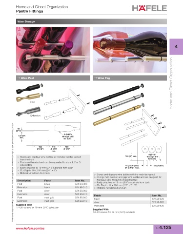 > Stores and displays wine bottles so the label can be viewed 100 (4") min. through drill