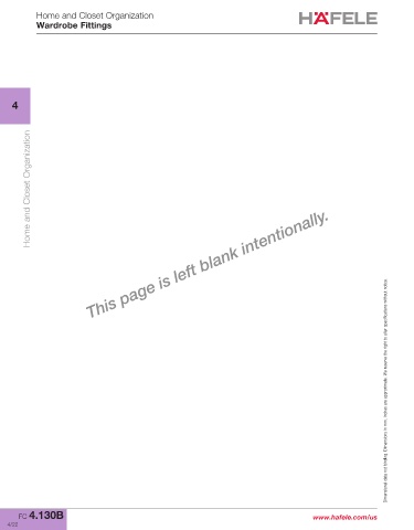 Home and Closet Organization Wardrobe Fittings 4 Home and Closet Organization FC 4.130B www.hafele.com/us Dimensional data not binding. Dimensions in mm, inches are approximate. We reserve the right to alter specifications without notice. 4/22