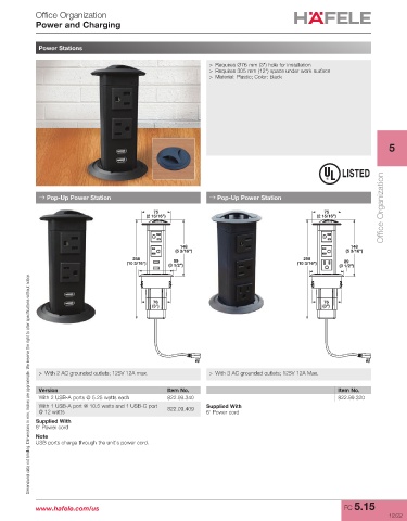 > With 2 AC grounded outlets; 125V 12A max. > With 3 AC grounded outlets; 125V 12A Max.