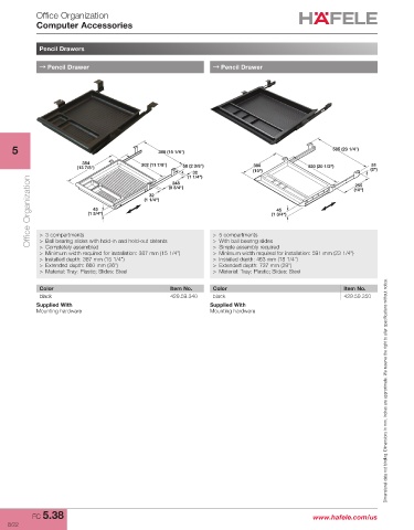> Minimum width required for installation: 387 mm (15 1/4") > 5 compartments