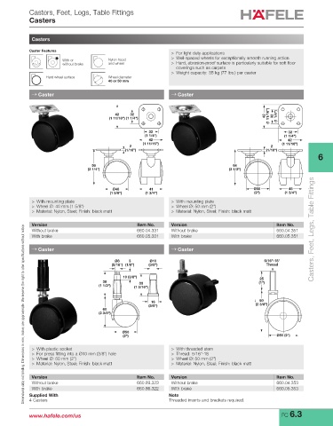Without brake 660.04.331 Without brake 660.04.351 Casters, Feet, Legs, Table Fittings
