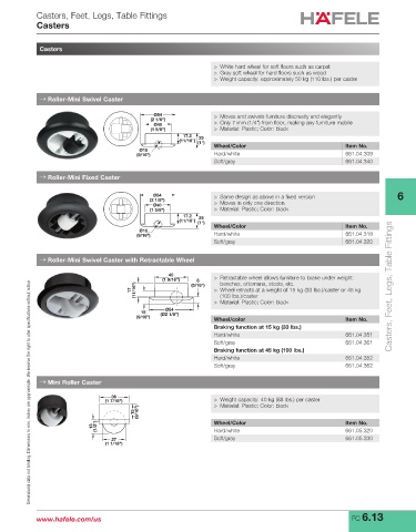 17 (11/16") (5/16") > Wheel retracts at a weight of 15 kg (33 lbs.)/caster or 45 kg Casters, Feet, Legs, Table Fittings