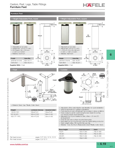 → Height Adjustable Foot, round → Height Adjustable Foot, square