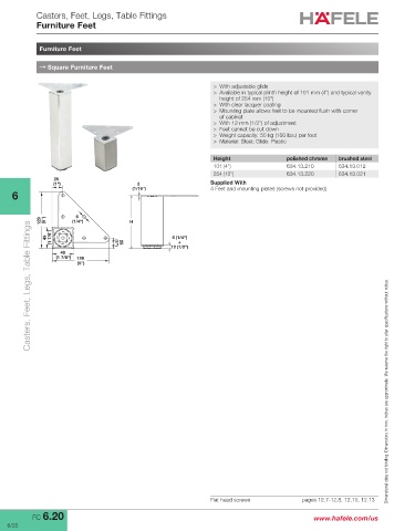 Flat head screws pages 12.7-12.8, 12.10, 12.13 Dimensional data not binding. Dimensions in mm, inches are approximate. We reserve the right to alter specifications without notice.