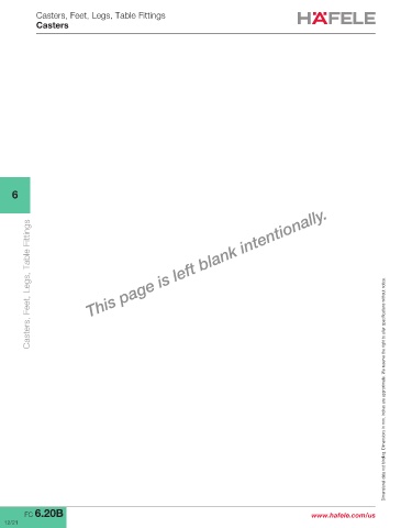 Casters, Feet, Legs, Table Fittings Casters 6 Casters, Feet, Legs, Table Fittings FC 6.20B www.hafele.com/us Dimensional data not binding. Dimensions in mm, inches are approximate. We reserve the right to alter specifications without notice. 12/21