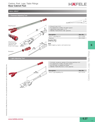 extension with 86 (1 5/8") Adjust height by hand or with electric tool. 6