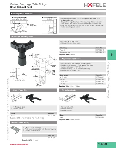 Mounting with the plinth Mounting with the plinth > Base heights listed are total including mounting plate, tube,