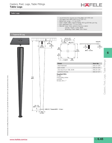 > Leg tapers from Ø60–Ø25 mm (2 3/8"–1")