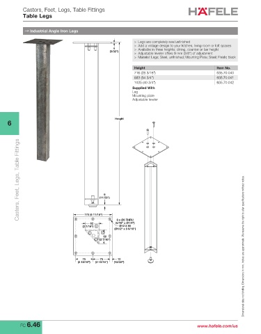 > Material: Legs; Steel, unfinished; Mounting Plate; Steel; Finish; black