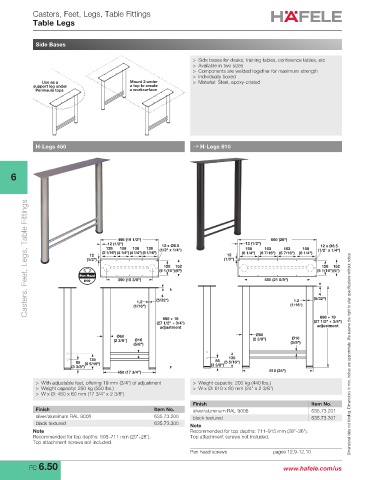 > With adjustable feet, offering 19 mm (3/4") of adjustment > Weight capacity: 200 kg (440 lbs.)