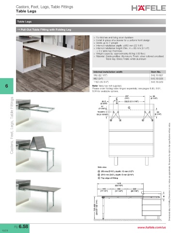 Please order folding table hinges separately; see pages 9.80, 9.81,
