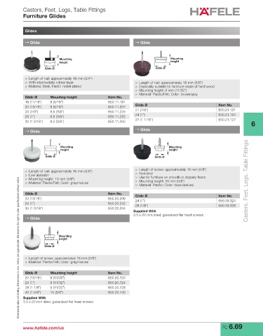 > Material: Plastic/Felt; Color: gray/natural > Mounting height: 10 mm (3/8") Casters, Feet, Legs, Table Fittings