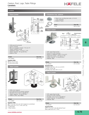 M10 X 100 (4") bolt Finish Item No. Casters, Feet, Legs, Table Fittings