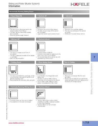 > The doors are folded into a package, similar > A combination of a hinged door and > The doors run between the floor and
