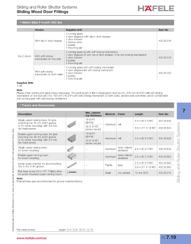 Please order running and guide tracks separately. The pitch length of the running gears must be min. 245 mm (9 5/8”) with soft closing