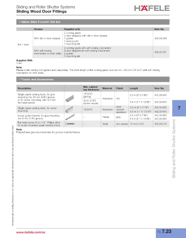 Please order running and guide tracks separately. The pitch length of the running gears must be min. 425 mm (16 3/4") with soft closing