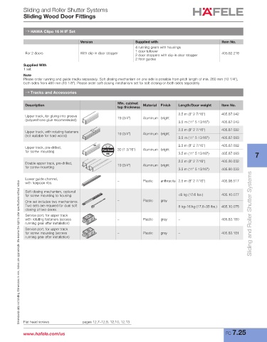 Please order running and guide tracks separately. Soft closing mechanism on one side is possible from pitch length of min. 260 mm (10 1/4"),