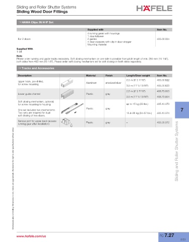 Please order running and guide tracks separately. Soft closing mechanism on one side is possible from pitch length of min. 260 mm (10 1/4"),